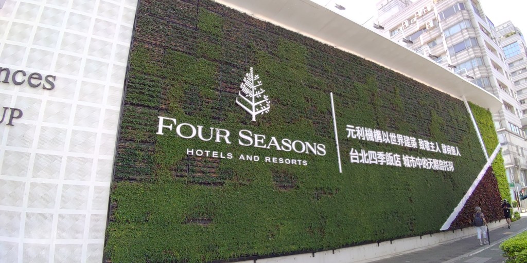 至於在新聞媒體與網路上的搜尋結果,早在2022年5月上旬就有公布修改調整過的台北四季酒店設計構想圖,雖然頂樓的遮蓋仍保留,但側邊的電梯有做調整(或較早先版本更加明確),採黑色主體鑲橘色側線的低度遮掩景觀電梯之設計,而頂端的四季樹標誌則似乎與原本的預設位置一樣。完工期預計是在2025年。站在四季酒店標誌前端詳,內心仍是激動莫名,期待台北四季酒店的順利進駐,一圓眾多台灣旅館人與民眾的夢想及期待。「可以真的摸得到雪(比喻『真的奢華品牌』),何必『撒鹽空中差可擬,未若柳絮因風起』?(暗指『假的奢華品牌』,因為不是舉世公認,也禁不起檢視)」,台灣旅館市場第一個國際頂級奢華酒店品牌(曾經存在的不算數)是台北文華東方酒店,未來將有台北四季酒店、台北柏悅酒店等陸續登場作伴,甚至連袂現身說法,期待市場、消費者的認知能有被導正的一天。