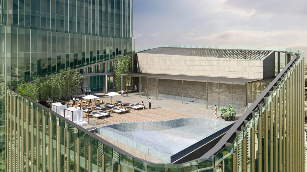 在台北大巨蛋園區內的「台北遠雄洲際酒店」,原始規劃是台北遠雄悅來大飯店,但因為業主的「改弦易轍」(如同高雄洲際酒店的案子一樣) 而能進入到筆者的園地裡😆。該案最初設定為地上20層、地下5層,總客房數約401間的「全服務型」大飯店,並配置特色餐廳、宴會廳、多功能會議室、健身房、游泳池、三溫暖設施及飯店專屬停車場,然而同樣因為要符合洲際酒店的品牌規範與規格,內部改建工程是必要的,雖然仍會受其先天條件所拘限。