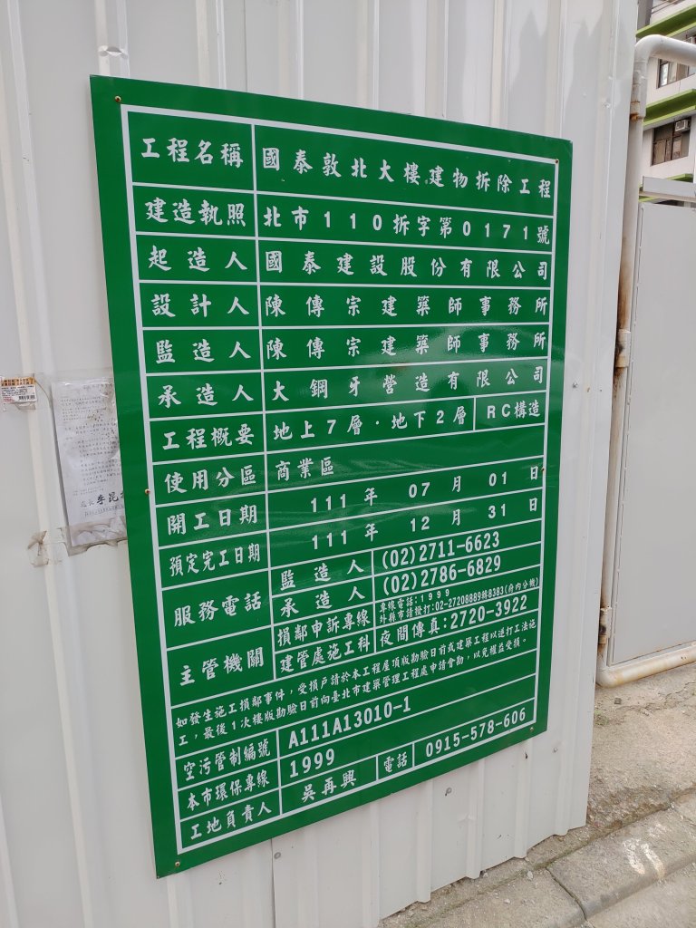 「三井花園飯店台北敦北館」開發案在經過了一年後,現址的「建物拆除工程」已將先前的國泰世華銀行拆除,呈現平坦的外觀,就現場的工程告示牌所示,預計在今年將開始飯店主體建築工程。按三井不動產最初的規劃來看,該處將興建地上14層、地下3層飯店與銀行共構的大樓,總客房數185間,至於早先預計的完工開幕期2024年,應該會再延後一至二年之許。