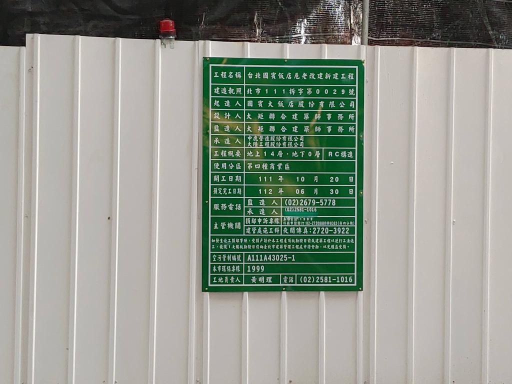 關於「台北國賓皇宮大飯店」一案早在2021年就已有新聞報導提及危老改建案較明確的規劃,只是這個資訊如同2022年11月初的臉書貼文所述,「一直被冷處理近一年的時間」,因為是「國 ‧ 賓 ‧ 大 ‧ 飯 ‧ 店」,筆者一直覺得不需要對此事發表些什麼,除了既有立場之外,個人私底下也沒有任何情感連結在他們身上,加上台灣業主常會「放飛自我」,不如等到危老建築的拆除工程開始再行分享。於是,就有了下方的照片佐證 (拍攝時間點是今年的1月中)。