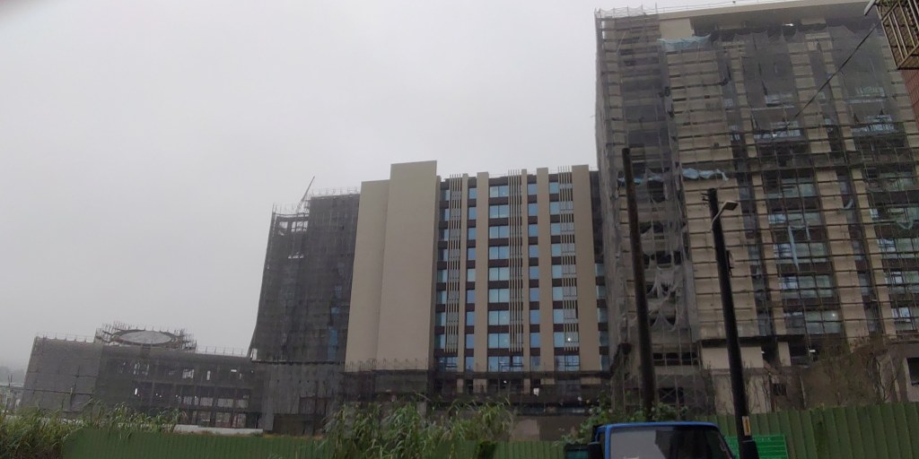 去年10月底曾在臉書貼文分享過新北金山凱悅酒店的高階人力召募資訊,而就去年11月上旬場勘所見,酒店棟外觀已近完成並且看似正進行內部工程,至於休閒暨宴會功能的會館棟也持續施工中,外觀已有五、六成的完成度。2021年首次拜訪只有看環金路側的酒店正面,而2022年則試著再繞到酒店背面瞧瞧,果然如「在頒獎典禮走紅地毯的女明星」,連身禮服正面看似保守端莊,背面竟是大露背開到接近股溝(女明星搏版面的小心機,暫且以美國女星千黛亞當例子→不可以色色~~ XD) ,確實前後深淺有致,比正面來得繁複不少,感覺更顯其橫向規模。整個酒店開發案依工程告示牌預計是2025年完工,推測有可能在2024奧運年完工開幕並成為凱悅集團在台首間渡假酒店(如果沒有程咬金的話)。