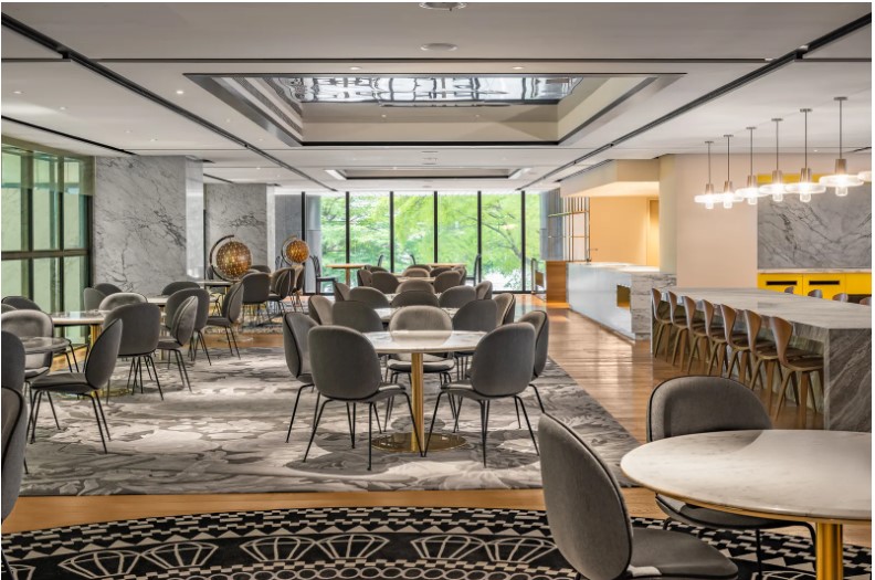 酒店更邀請旗下品牌多次入選米其林以及亞洲50大餐廳的餐飲集團 MMHG ,於一樓打造全新Westwood餐酒館,融合西岸多元文化的現代美式餐廳,帶有時尚及華麗復古元素的環繞式中島酒吧,仿若置身美好年代的風華場景。飯店早餐亦由 Westwood 設計規劃,以「環遊世界」為概念,結合異國、在地的各式風味料理。