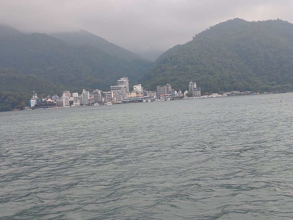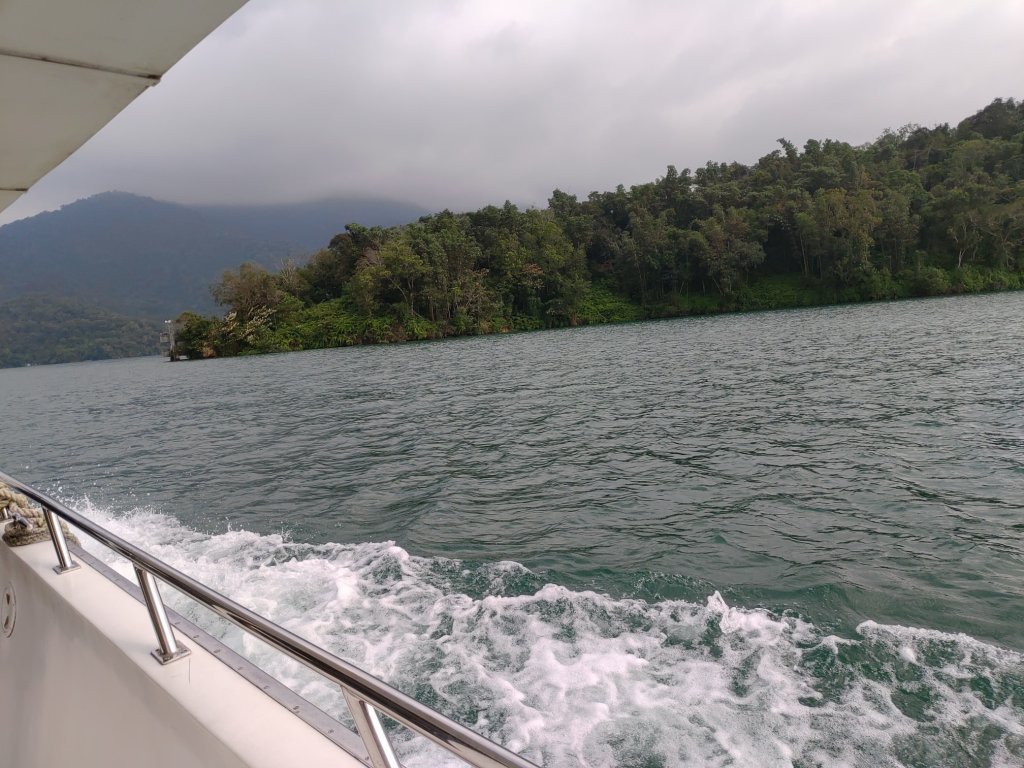 當時特地從台中干城站搭乘觀光巴士衝場至日月潭以實際觀察日月潭力麗溫德姆渡假酒店的興建進度,這可是筆者生平頭一遭到日月潭(笑),因此,與其搭環湖巴士台(陸路)到伊達邵碼頭商圈,不如以「觀光客必做」(must-do)行程搭日月潭遊艇前往。從水社碼頭到玄光碼頭,再到伊達邵碼頭,只要50元銅板價(在碼頭旁的遊艇公司窗口買票),「俗 (閩南語)」,而且重點是,「超~~颯爽der」~~滿水位的日月潭除了美景還是美景(記得坐遊艇半戶外的座位區,在氣候允許的狀況下)。(→若試著凝視碧綠潭水的深處,似乎有生物潛藏在潭底神秘角落,但拉魯島又鎮守整個日月潭~~類Moana劇情→經典一幕)