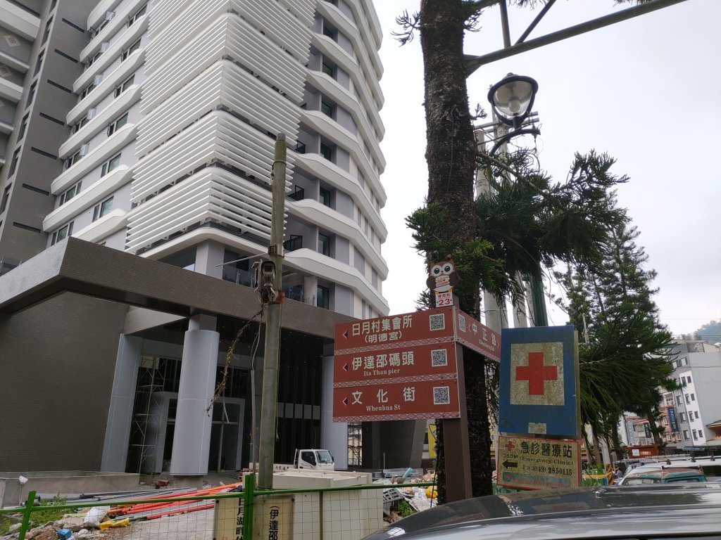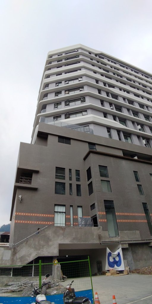 抵達伊達邵碼頭後,經過停車場,延著商店街(文化街)往小斜坡上行就可以看到酒店正後方(酒店是狹長型的基地),若從酒店正後方的左側以順時鐘方向走,經過側門,就可以到酒店位於中正路上的大門。以現場仍在施工的狀態來看,先前的「2022年第三季開幕」或者「2023年春季」的官方開幕期程似乎要再延後,因為還有內部裝潢以及人員籌備的進度,恐怕要等到2023年下半年或第四季才有可能完工開幕。