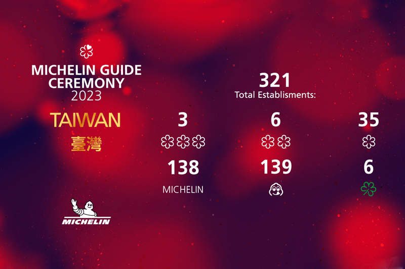 2023年版的台灣米其林(米芝蓮)指南已於2023年8月31日在台北文華東方酒店舉行頒獎典禮,令人驚喜的是台灣餐飲市場今年獲得米其林三星認證者已經從單一業者增加至三家,同時二星與一星認證的餐廳數也有成長,至於米其林指南的必比登名單亦增添了更多台灣在地美食店家。