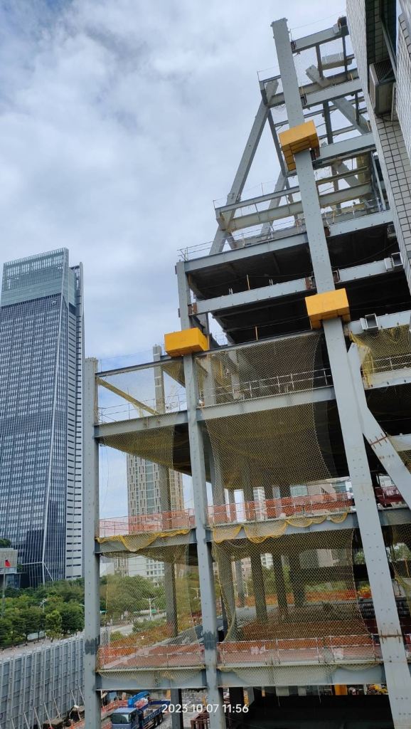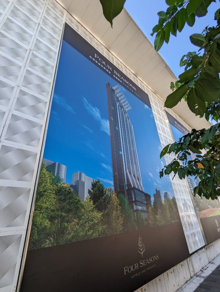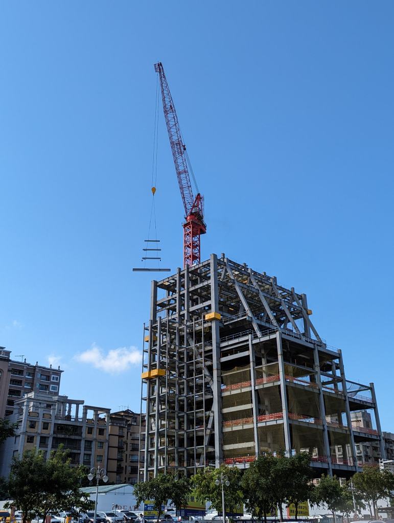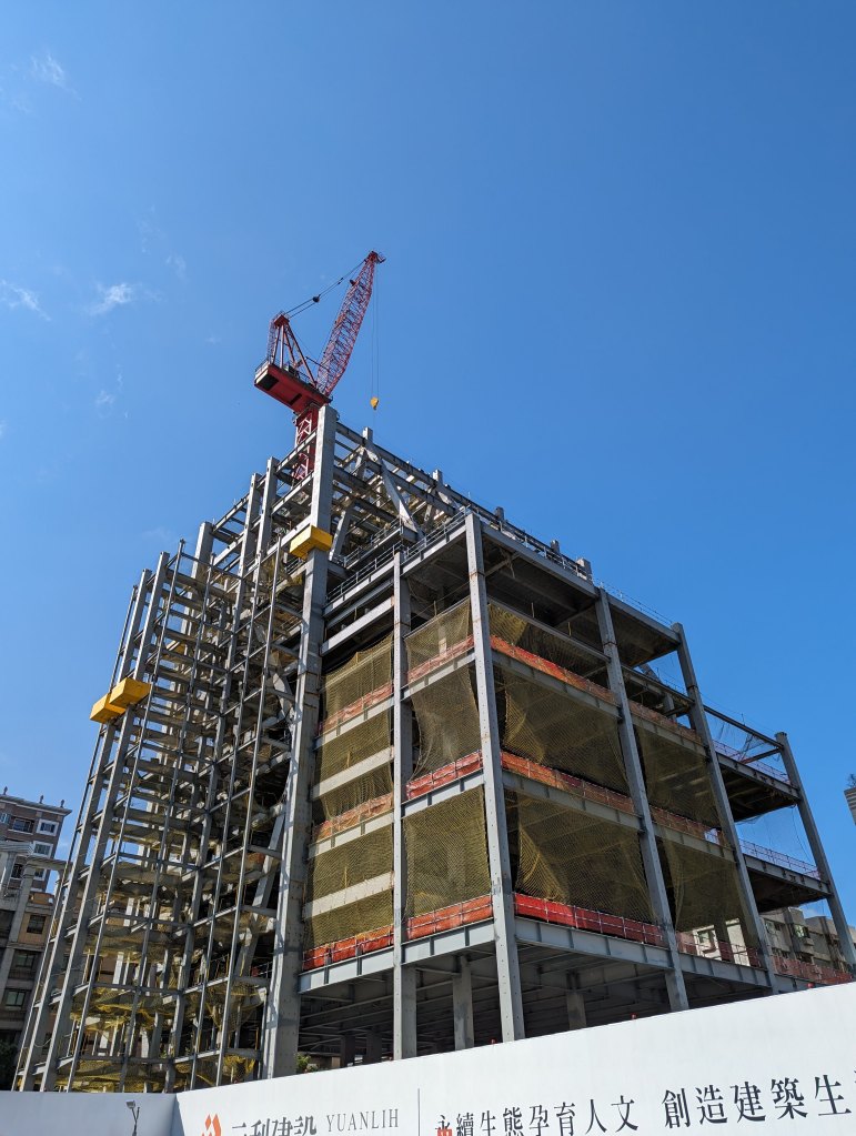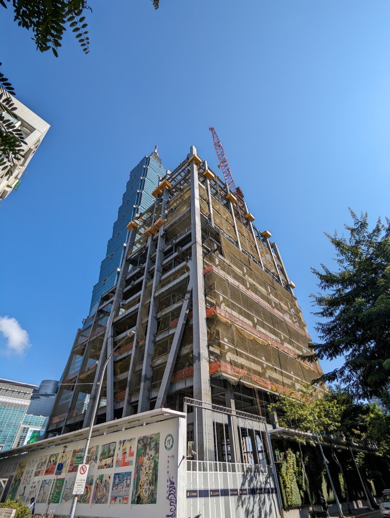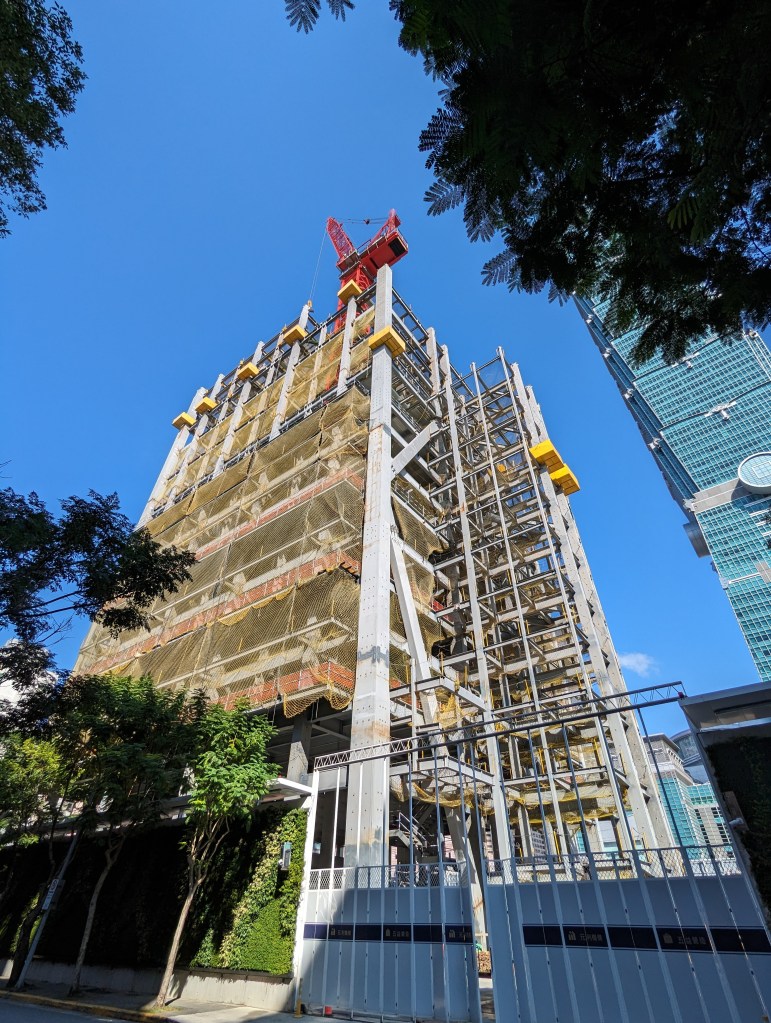 位於台北101大樓正對面的「台北元利四季酒店」開發案現場,依10月25日所見進度已是樓高約6-7層的鋼骨建築,基本上與2022年5月所公開的相關設計構想圖所見一致,並持續興建中。