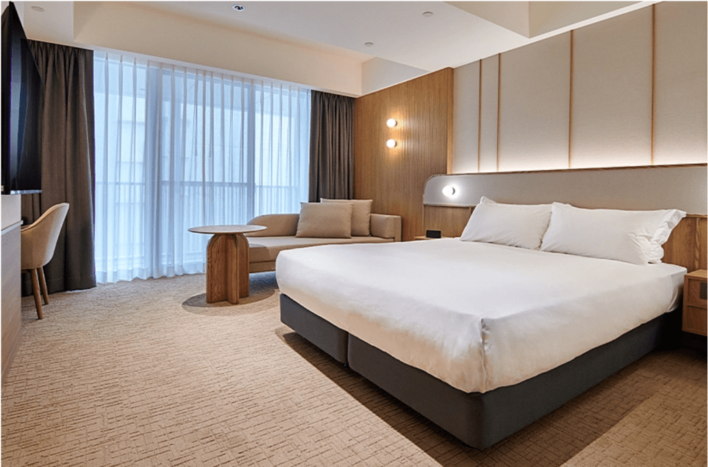 相鐵Grand Frésa飯店台北西門另有「唯二間」的四人房,按官網說明,房間內設有滾筒式洗衣機/烘乾機、雙層冰箱、微波爐和浴缸。房間與床位之間還設有拉門。適合家庭客或長住客入住。