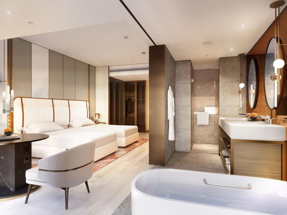 這個台中商銀總部大樓開發案所規劃進駐的國際連鎖酒店─台中JW Marriott酒店差不多已經是公開的祕密(笑),因為連媒體記者們都已報導撰文多次,只是實際的業主一直都沒有主動公開明講,而在2022年的相關報導中,曾提及該案為台中商銀與中部某業者簽定租約,再由該業者成為萬豪酒店集團的合作對象與對口。不過,未來仍舊希望能有業主方的正式公告。有當地同業表示,這「中間者」業主迄今仍相當神祕,何時願意現身解密,尚待觀察。