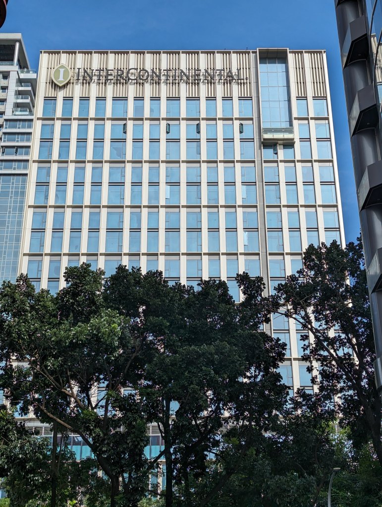 位於草悟道旁、總客房數206間的台中勤美洲際酒店(InterContinental Taichung)就2023年10月5日所見,酒店外觀已完成,先前高於一般人身高的鐵圍籬已撤除,改用較矮的大網格圍籬以畫分工地範圍,並且持續進行內外部工程,包含植栽美化,只是內部進度因玻璃貼膜與反光不易見。2023年六月初前後曾有2024年第二季開幕的資訊,就當時外觀來看應有機會,同樣也需後續觀察。