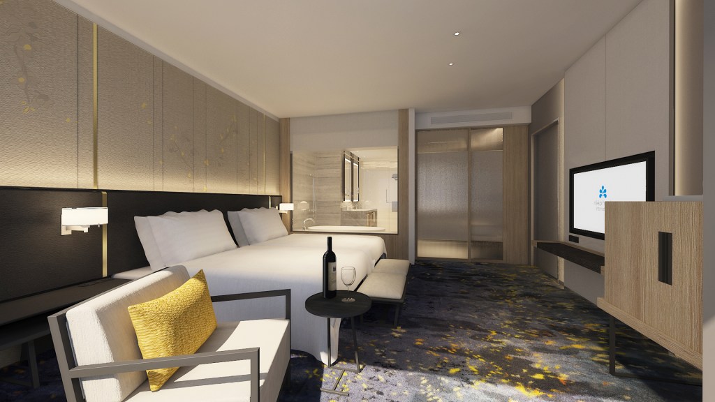 作為全台首間「如實」以「日航酒店」之名以行、不需小編附註「aka」予以釐清的品牌酒店,未來更有機會展現大倉日航酒店集團所設定的產品特色,比方客房床頭板會有日本櫻花的圖案符碼(見下方客房圖片,遠在太平洋對岸的舊金山日航酒店也有)、公共區域有日本文化相關的設計與擺設等部份,硬體設計皆有其目的與功能,並融入日式款待精神於酒店當中。