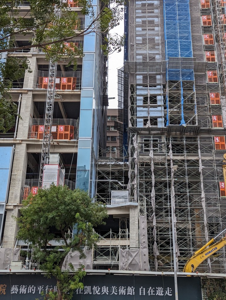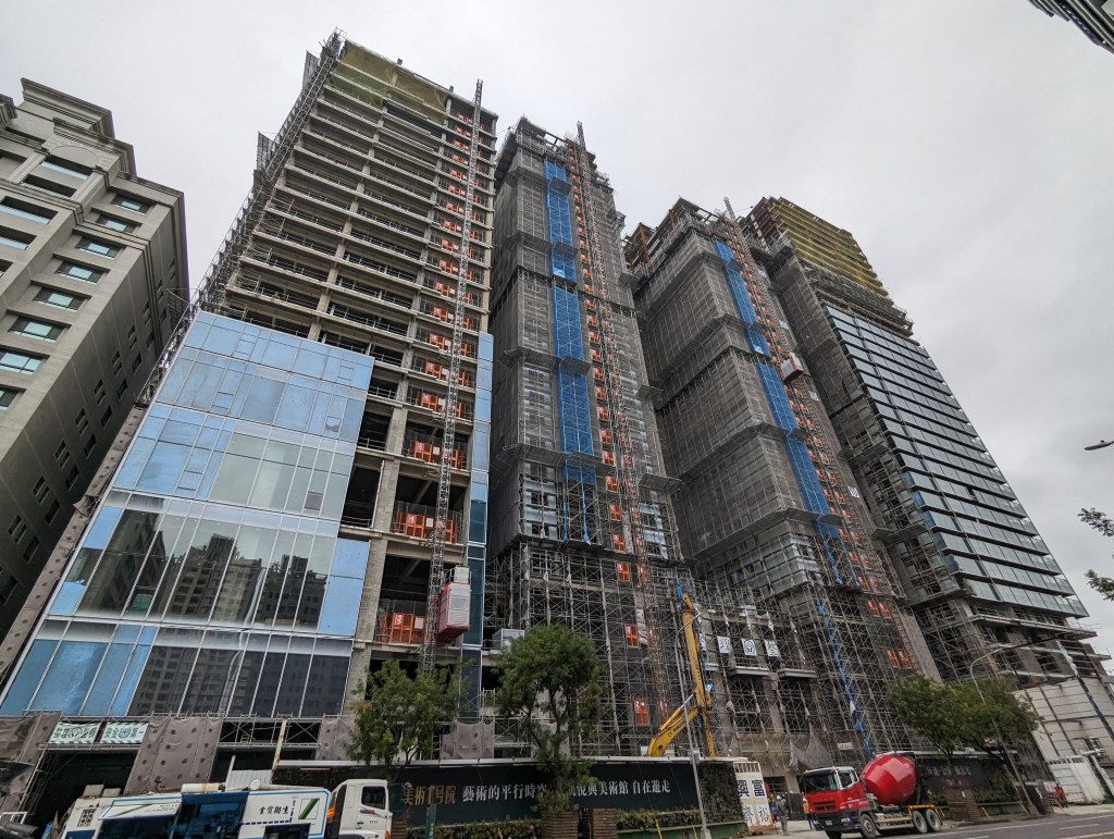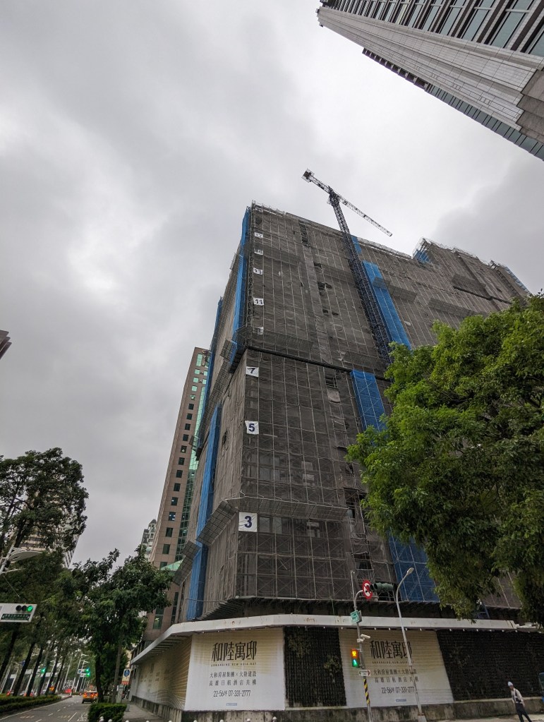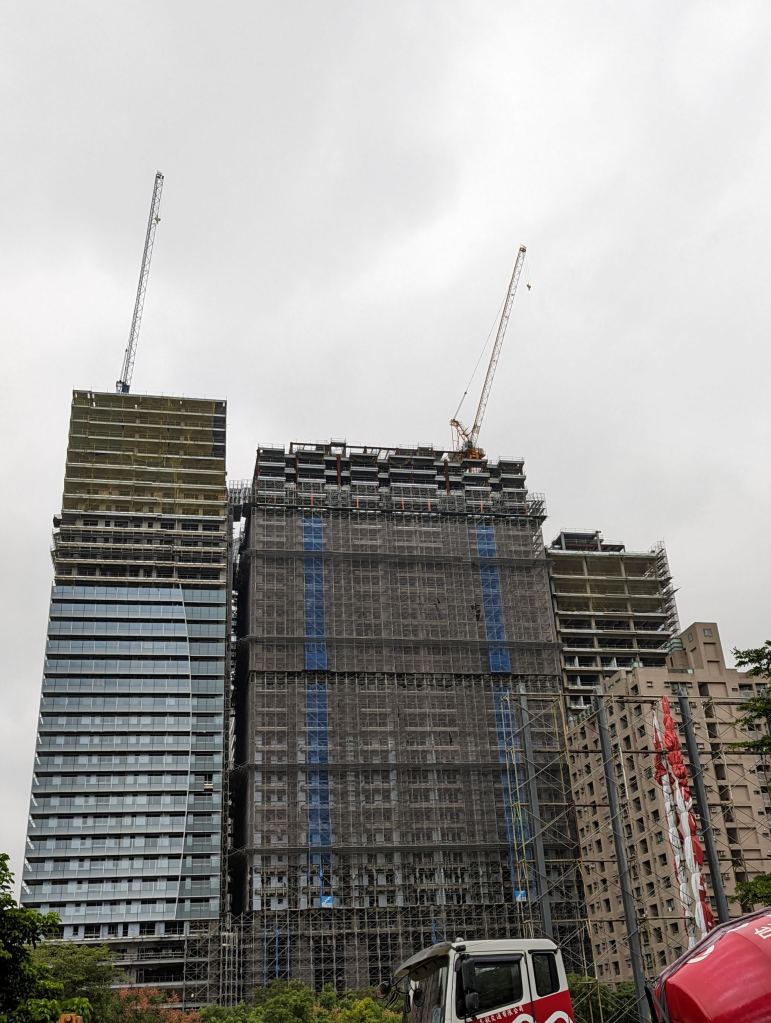 高雄凱悅酒店(Hyatt Regency Kaohsiung)就筆者於2023年10月4日所見的興建進度,酒店棟主體外觀看似大致完成,玻璃帷幕已開始從低樓層安裝,至於連接的雙棟豪宅也同樣是進入到外觀幾近完成的階段,而一街之隔的建案則已完工。高雄凱悅酒店推估完工開幕時程預計落在2024年至2025年之間。