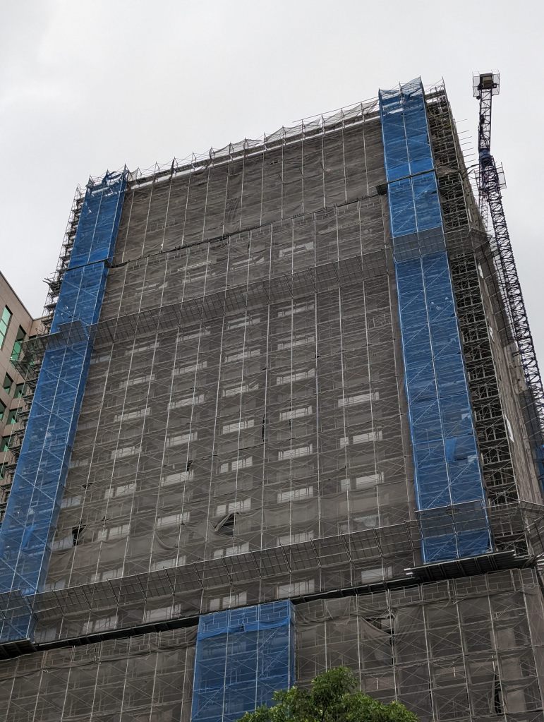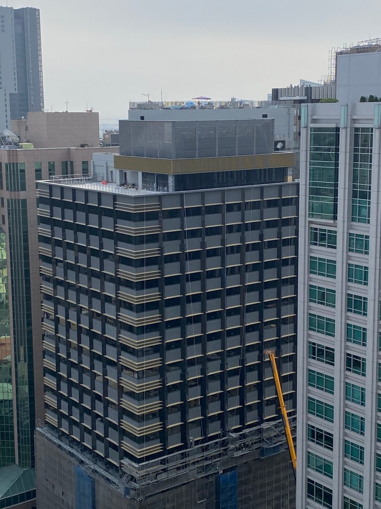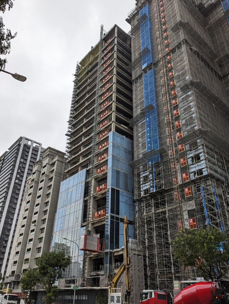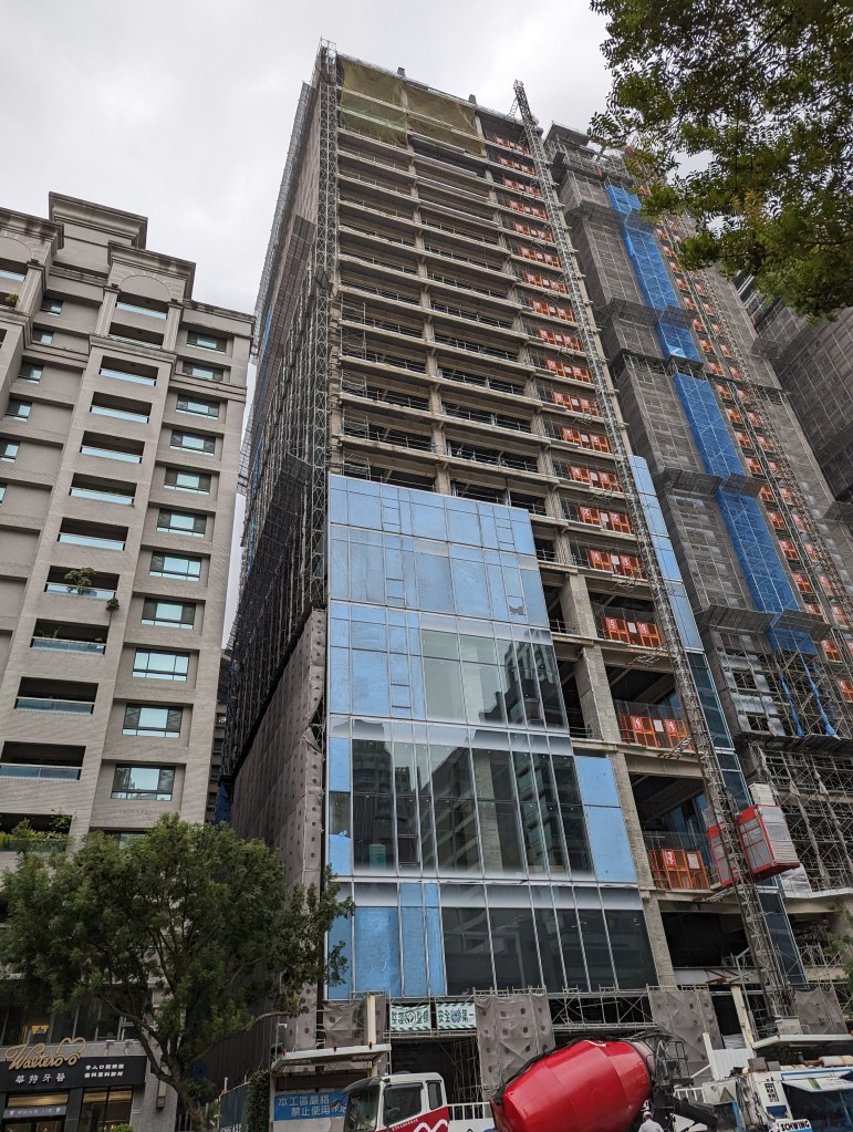 高雄凱悅酒店(Hyatt Regency Kaohsiung)就筆者於2023年10月4日所見的興建進度,酒店棟主體外觀看似大致完成,玻璃帷幕已開始從低樓層安裝,至於連接的雙棟豪宅也同樣是進入到外觀幾近完成的階段,而一街之隔的建案則已完工。高雄凱悅酒店推估完工開幕時程預計落在2024年至2025年之間。