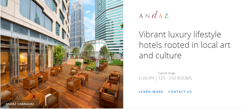 奢華暨生活風格(精品)品牌的安達仕酒店(Andaz)於2007年首度推出。