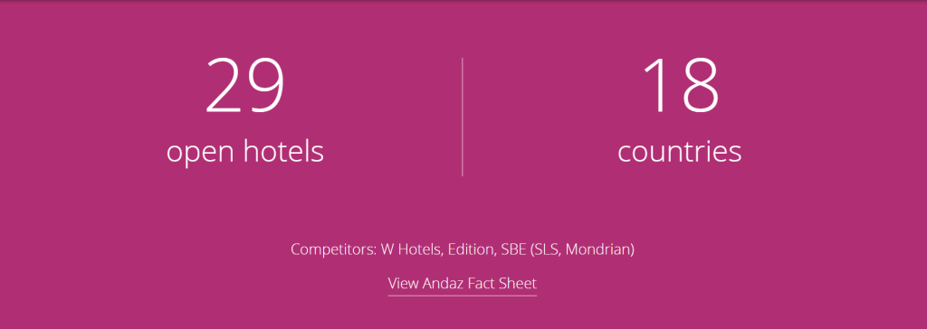 According to the Hyatt’s website, there are 29 Andaz resorts* open across the globe and 17 in the pipeline, including the Andaz Doha, Andaz Miami Beach, Andaz Turks & Caicos, Andaz Lisbon and Andaz Bangkok.