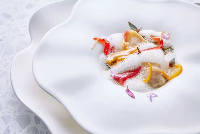 同樣坐落於臺中的 L’Atelier par Yao 也獲得一星肯定。這家餐廳由一位曾在法國磨練技藝的年輕主廚掌舵,他擅於運用本地和進口食材,並透過亞洲烹調技巧呈現當代法國美食。其中評審特別推薦碳烤干貝,在昆布、豌豆及巴西里醬汁的搭配下,呈現令人難忘的搭配與口感。