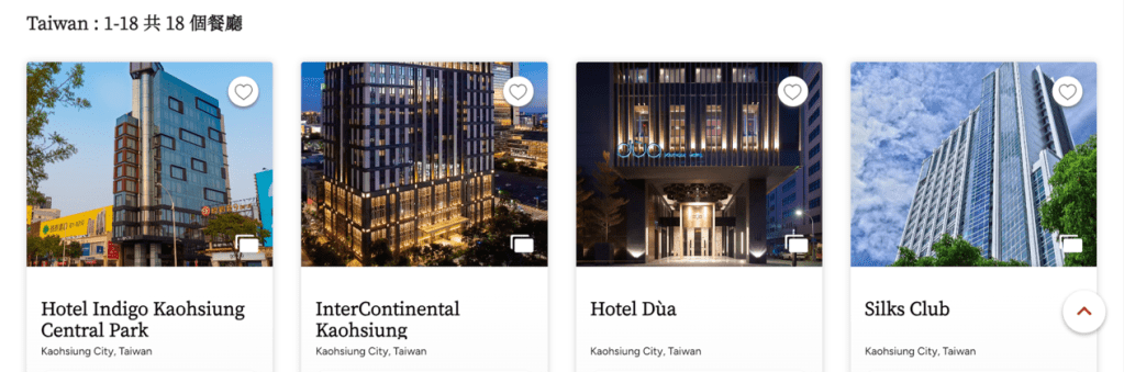 至於台灣國際連鎖酒店據點的館內餐廳被收錄到米其林指南中,甚至獲得星級者,計有下方餐廳: