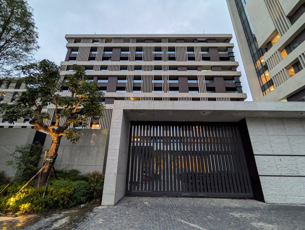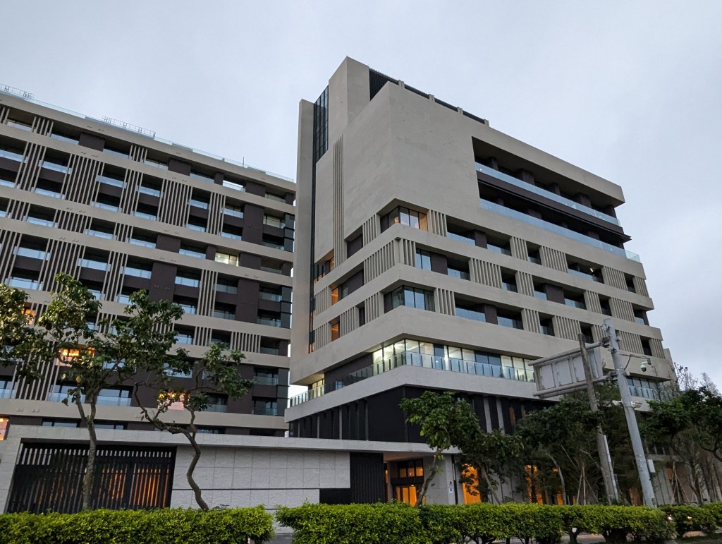 相對於2023年場勘的平靜,2024年的台北淡水逸衡酒店暨兆美萬海住宅開發案則是動態呈現─ 酒店棟與住宅棟均在興建中。台北淡水逸衡酒店按原本規劃為樓高12層、總客數135間的渡假型酒店,而以中庭廣場區隔的住宅棟則樓高20層(可見下方設計構想圖),依工程告示牌所見,預計2026年4月底完工。一街之隔(一輕軌站之隔)的南山淡水沙崙文創園區也已於2024/10/30舉行上樑典禮,並持續興建中,預計2026年9月啟用。因此,在2026年第四季,這區域將料將有嶄新風貌,與「臨近的業者」做出區隔。