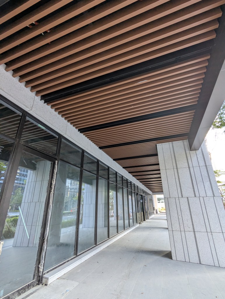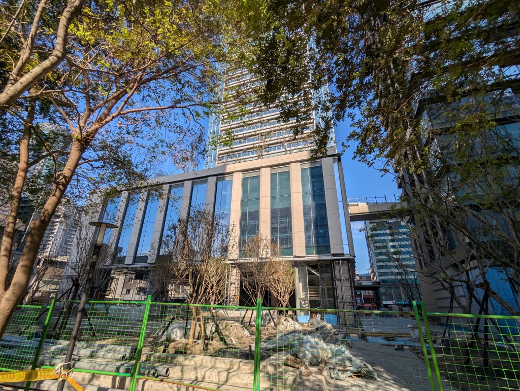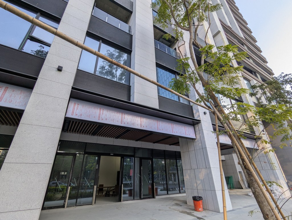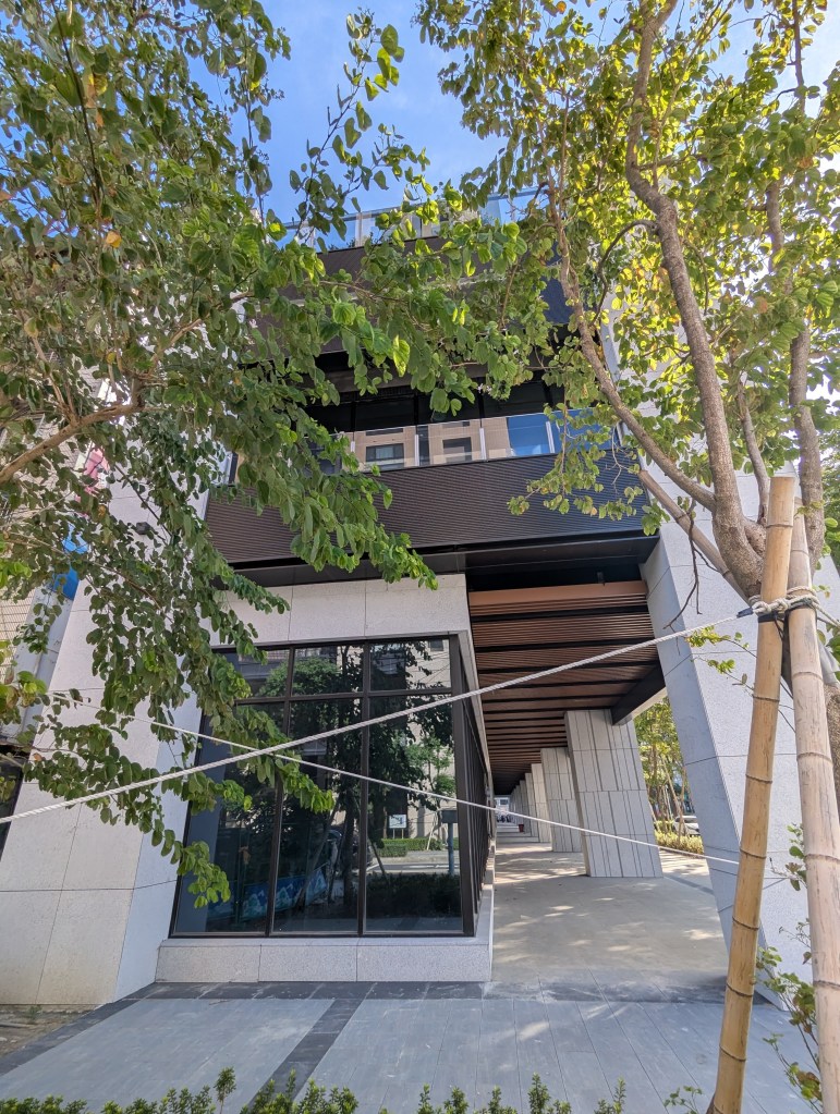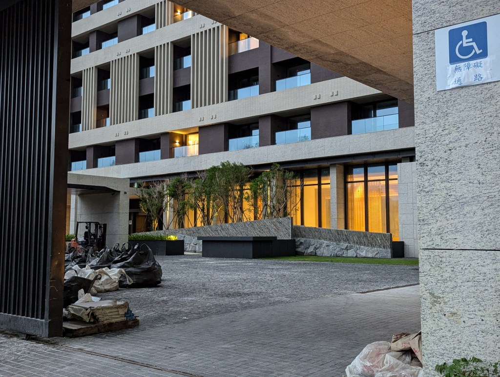 住宅棟與酒店棟後方圍籬外的公共開放空間在二年前已有樹木植栽與長凳,鄰里居民會來此走動與休憩,未來圍離撤除、中庭綠地完成後,會是個蠻不錯的小公園,與其他三間艾美酒店有著不同的地景與情調。
