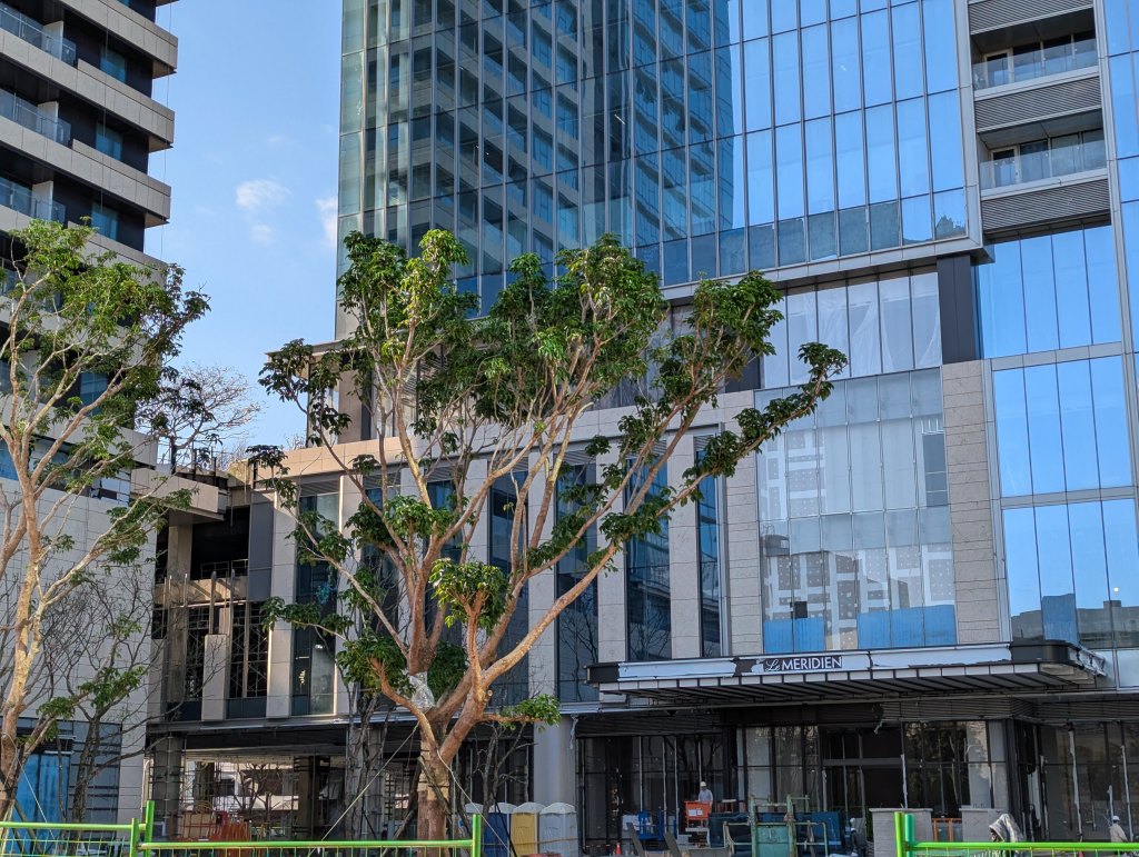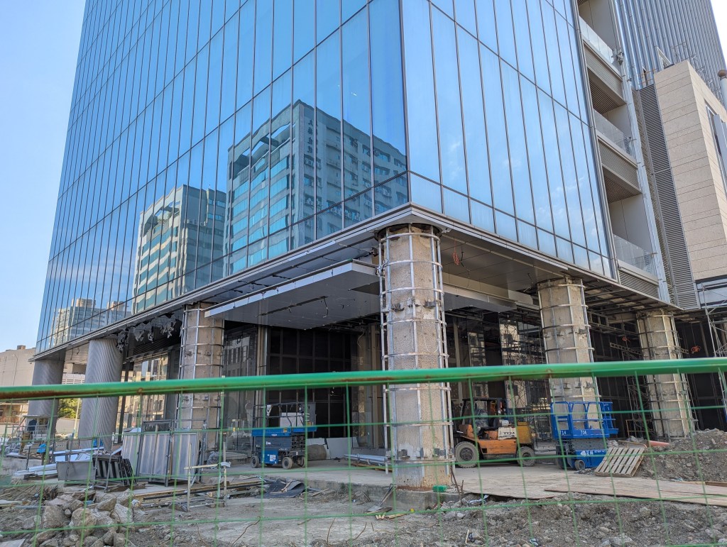 至於新北新莊喜來登酒店暨炎洲THE ONE住宅案,就2024年11月30日及12月1日所見,外觀已完成,現正進行內裝工程,但尚未見到任何酒店標誌以及住宅棟名稱。早先筆者誤以為這雙棟建築較高樓者為住宅,後來釐清是較高樓者(19層樓)為酒店棟,較低樓者(17層樓)為住宅棟,而2、3樓則是酒店的餐廳與健身中心(含戶外泳池)區域,相關的公共區域照片可另參先前的文章。至於住宅棟業已於2021年2月下旬宣佈完售。這個可說是全台規模最小的喜來登酒店開發合作案(總客房數150間,採品牌加盟形式合作),雖然2024年12月初有傳聞預計在2026年第一季可開幕,但最終能否陸續公開客房及其他內裝的設計構想圖並順利達標營運,仍待後續觀察。