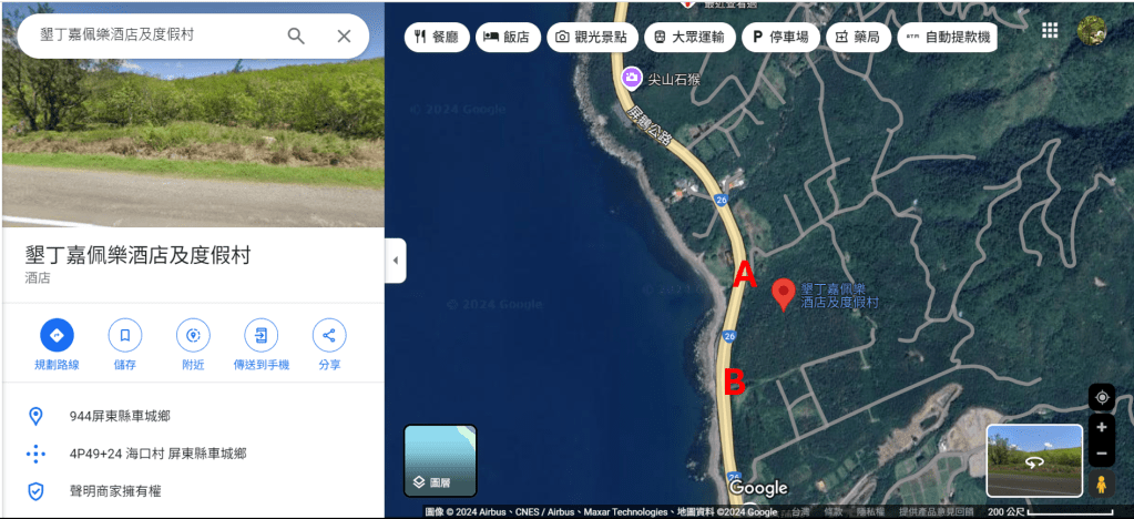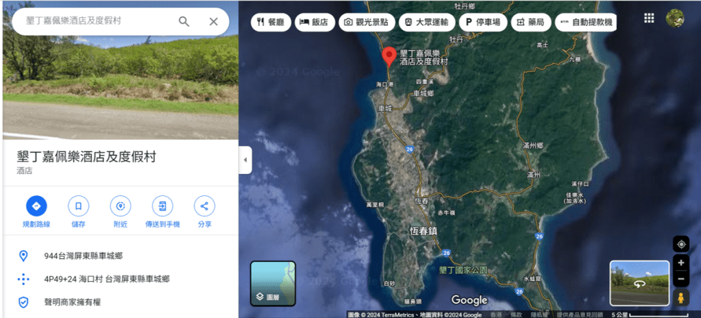 墾丁嘉佩樂渡假酒店(Capella Kenting)的「橫空出世」來自於今年7月23日的獨家新聞報導,並於報導中提及當天為動土典禮,並預計2028年完工開幕。若以2024年5月谷歌地圖的地景記錄與2024年11月的空照圖來看(見下方圖片),暫且無任何明顯的異動。以業者的規劃,「…三萬三千坪的基地以超低密度打造65間具備高度隱私的奢華獨棟Villa,為全台灣第一座『純Villa』國際級度假村。墾丁嘉佩樂每棟Villa皆具備私人泳池、溫泉,並坐擁180度無敵海景,在房內即可飽覽夢幻海上日落…」。