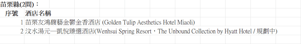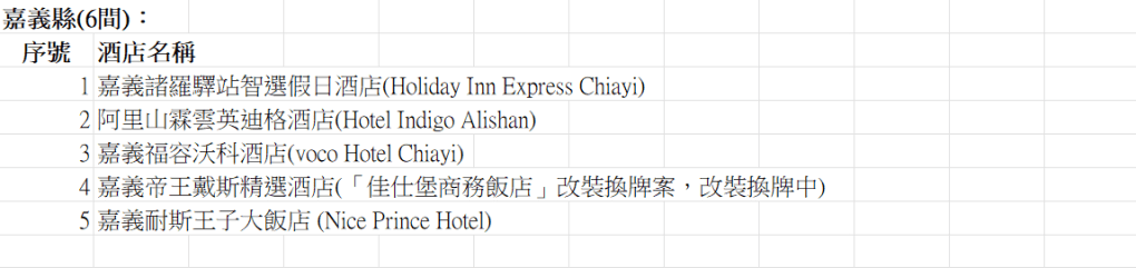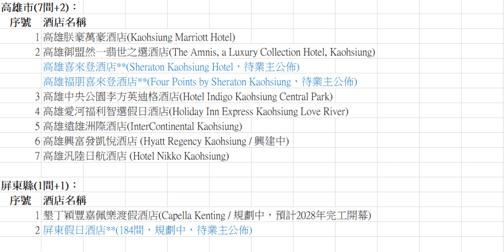 一、依酒店集團分類 (待觀察者以「**」表示)