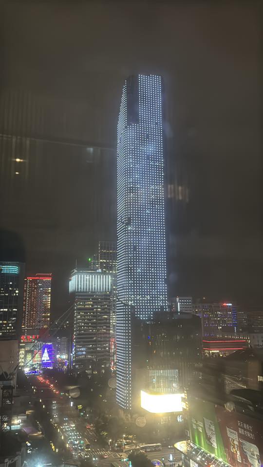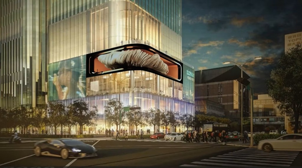 不過,近期有不少網友在台北天空塔周圍觀察到變化,除了有快閃的指引路牌外,更多的是在晚間明顯可見的燈光與廣告螢幕測試,如下方圖片所示,尤其是成為新聞焦點的大樓外牆字幕。
