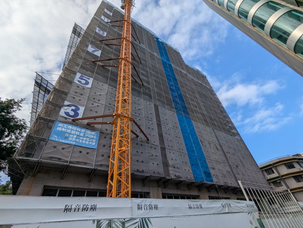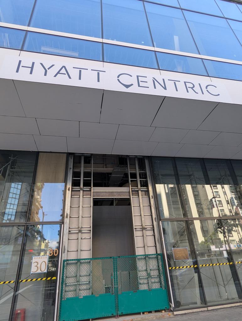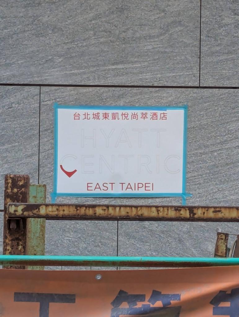 早先的前馥敦飯店南京館重建換牌案為「台北松山凱悅尚萃酒店(Hyatt Centric Taipei Songshan )」,而2025年場勘時才注意到名稱已變更為「台北城東凱悅尚萃酒店(Hyatt Centric East Taipei)」並發佈在凱悅集團開發官網上。相較於2024年案場仍以高工程圍籬區隔與保護,今年則是已更換成簡易型的低圍籬,一樓落地窗已安裝完成,而在南京東路側的大門上方已有酒店品牌標誌,酒店的前後門則有暫時以紙張浮貼、小型的酒店招牌,酒店頂樓曾被網友拍到有酒店品牌標誌,但筆者前去查看時,則看似被抹去,可能未來以金屬製標誌就定位。透過玻璃帷幕,可見各樓層有不少的內裝材料擺放著,刻正忙著裝潢客房等區域。
