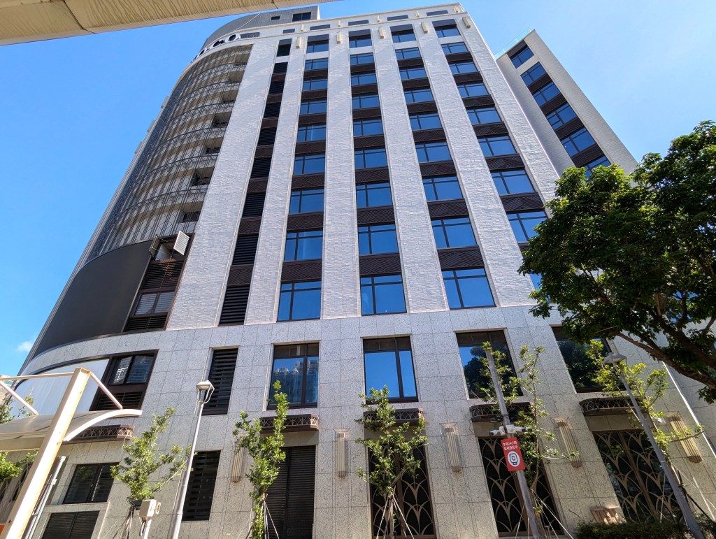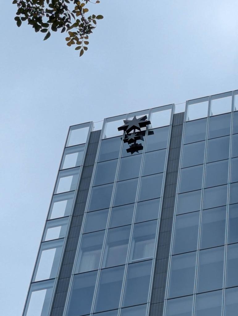 就筆者在2025年11月9日現場的觀察,品牌酒店應有的標誌都可見,不論是在大樓頂層或是入口處車道旁,乃至於獨棟的The Glasshouse 酒吧,融入一旁玻璃帷幕的凱基金控總部大樓,在白天看起來不會過於突兀,相對低調的存在。至於這幾年場勘感覺頗有壓迫感的維安人員依舊,這對於高級商辦大樓本身是好事與職責所在,意指閒雜人等勿隨意進入私人物業,不過是否會「錯殺」就說不準了→應該是直接往酒店大門直直走進去,狂拍照才是(笑)。