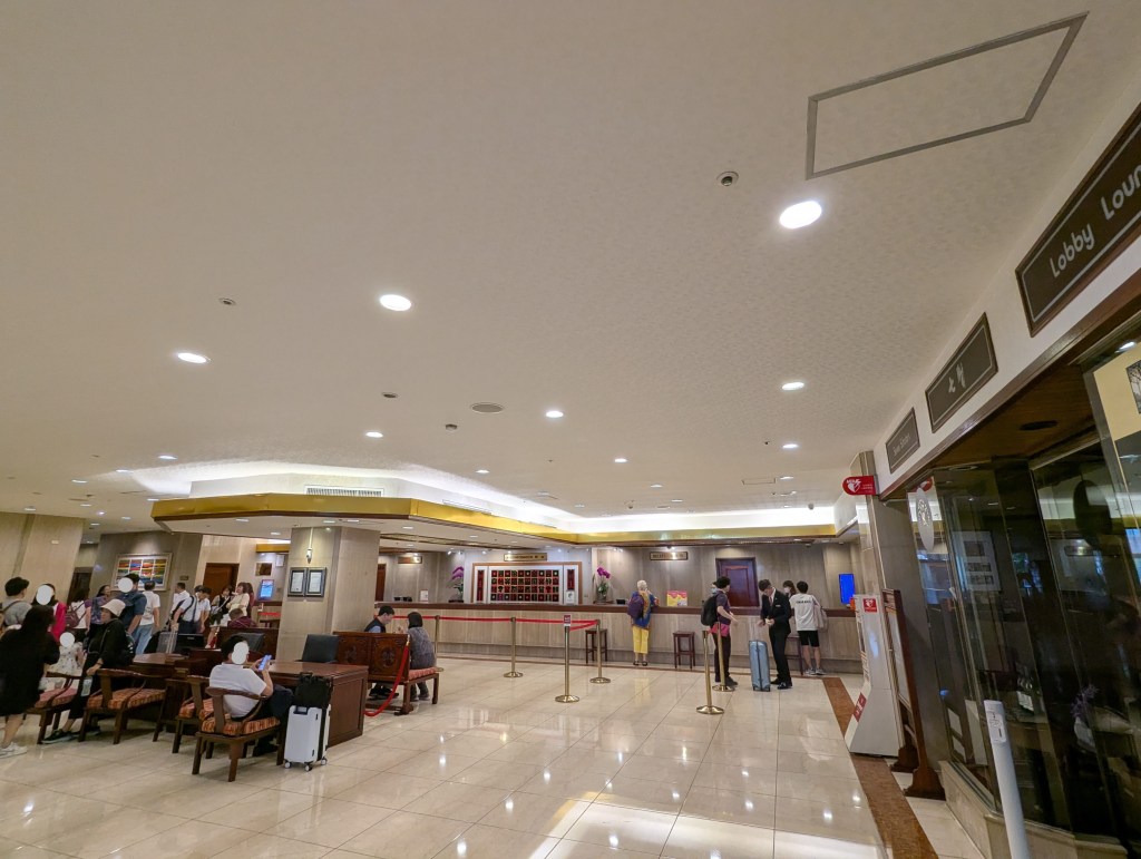 飯店前檯接待區,右側為七賢吧(即大廳酒吧)的入口處