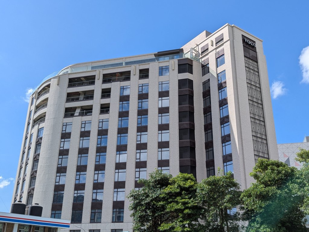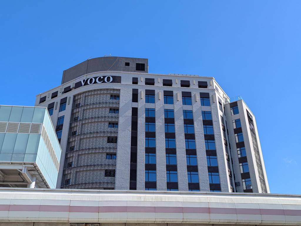 對筆者來說,台北士林voco酒店在此次場勘中算是亮眼的案子之一,隨著時間的推移,酒店可見的外觀裝潢工程已到最後的階段,除了去年分享的頂層「voco」標誌外,開在捷運士林站二號出口附近的酒店大門,現場觀察推測會採用旋轉門(revolving door)的設計,上方已掛上明顯的金色品牌標誌,外牆則添加金屬細紋裝飾,有種典雅時尚感,至於酒店的實際規劃,如總客房數、餐飲單位、公共服務設施等,及其內裝設計構想圖,都待未來由業主或品牌管理方公佈。雖然地上12層、地下3層的酒店「內涵」尚待明朗,但筆者會將這間酒店列為未來期待開幕的國際連鎖品牌酒店之一。附帶一提的是,捷運軌道側的客房隔音降噪措施應及早規劃與配置,以求未來營運時的長治久安,畢竟「纖細敏感」的客人不少 。