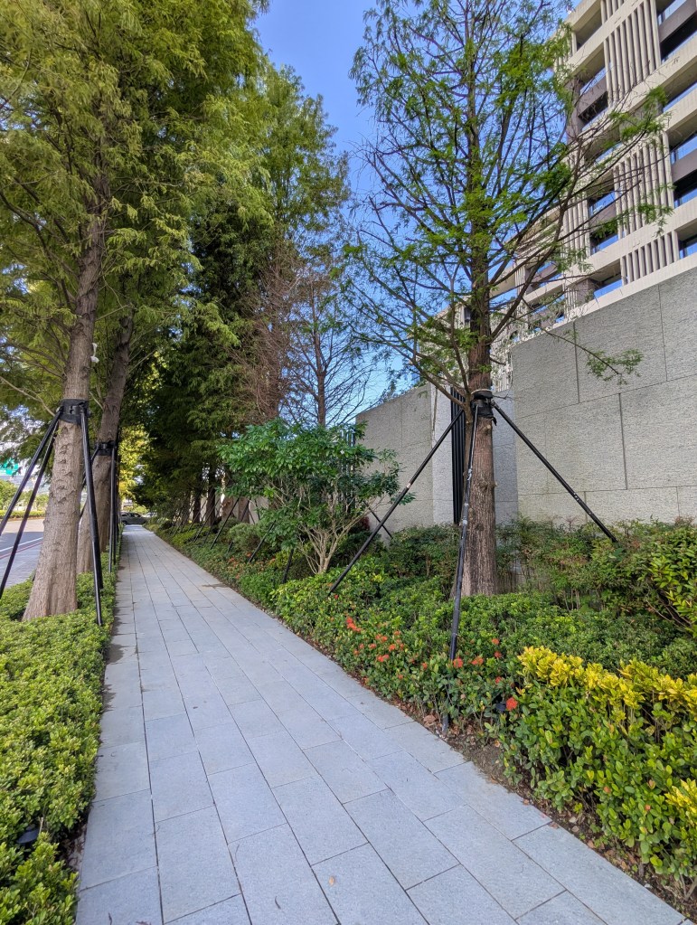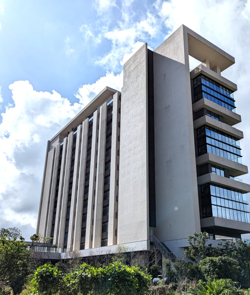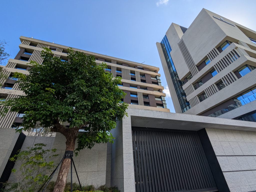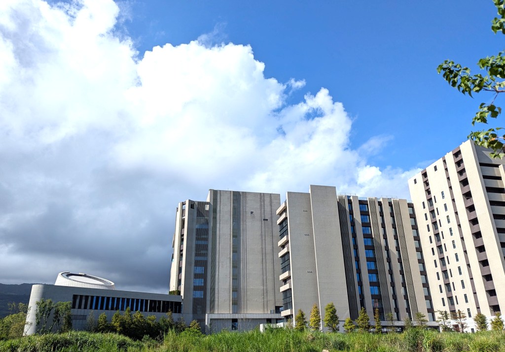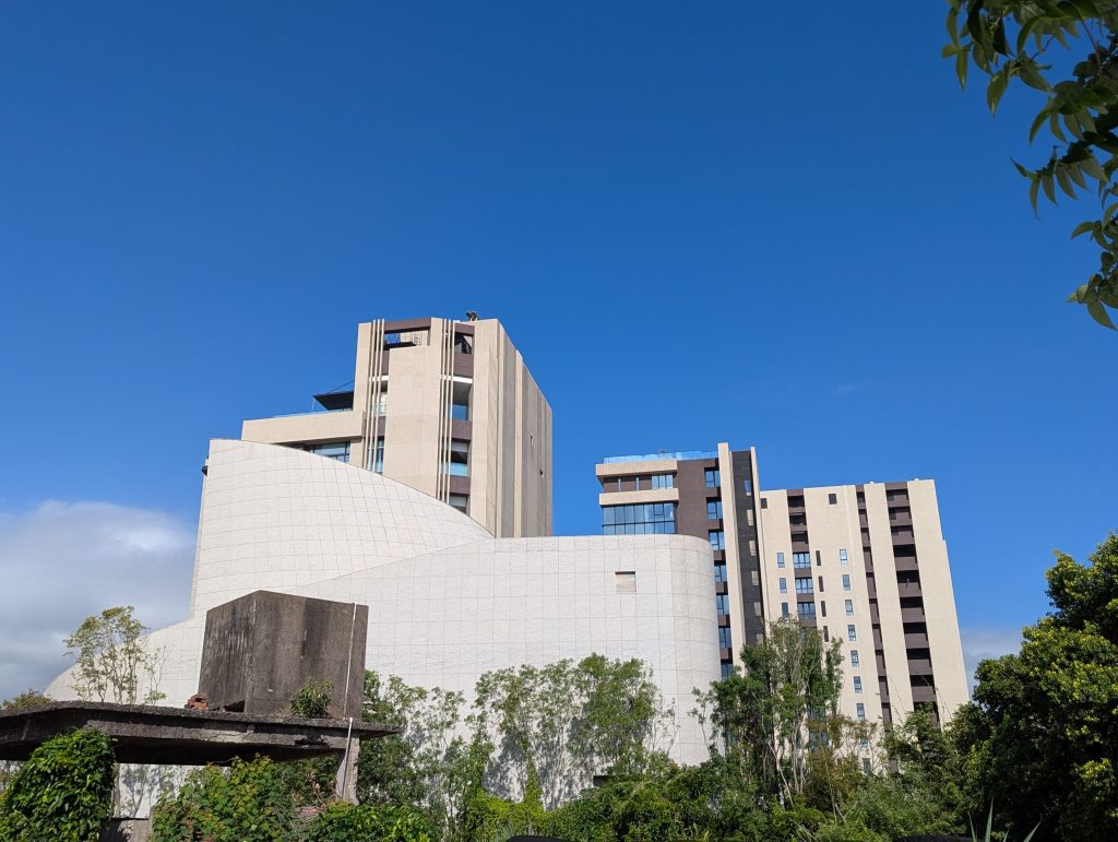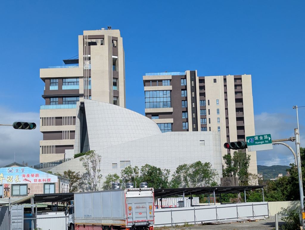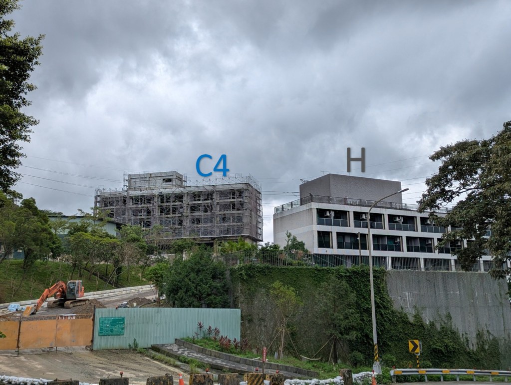 九份艾美酒店與九份歐軒酒店的出線最早可追溯至2022年9月萬豪集團在台北萬豪酒店所舉辦的記者會,而隨著時序推進,除了潛在的業主已被網友分享出來,筆者也在2024年的場勘文將業主早先的開發歷程與2024年所見匯整,當時看似以國際品牌酒店以外的建物優先興建,2025年所見則是C4棟建物(需搭配下方的空照圖與園區地圖)的外觀已大致完成,至於C4棟旁的C3、C1棟預定位置則看似無動靜。