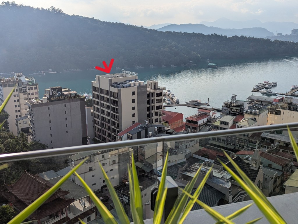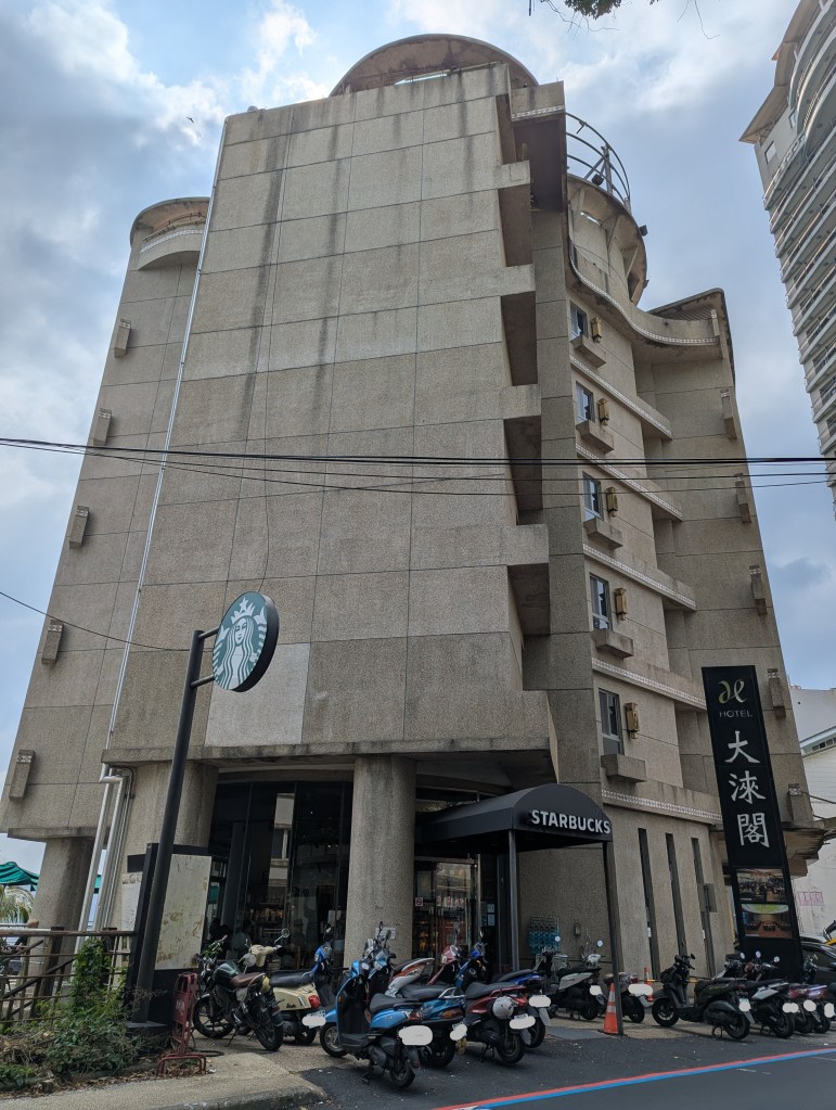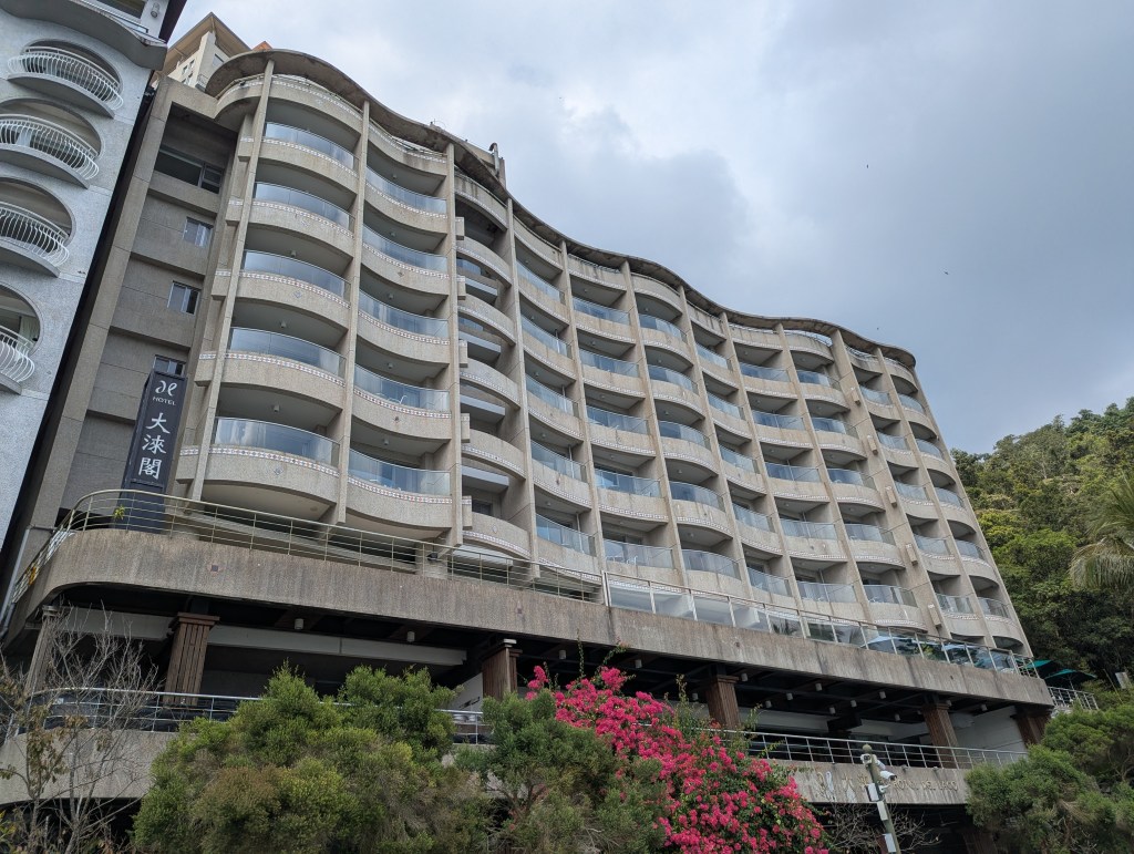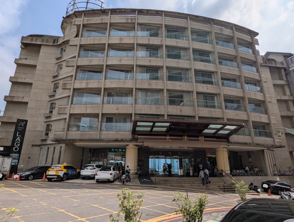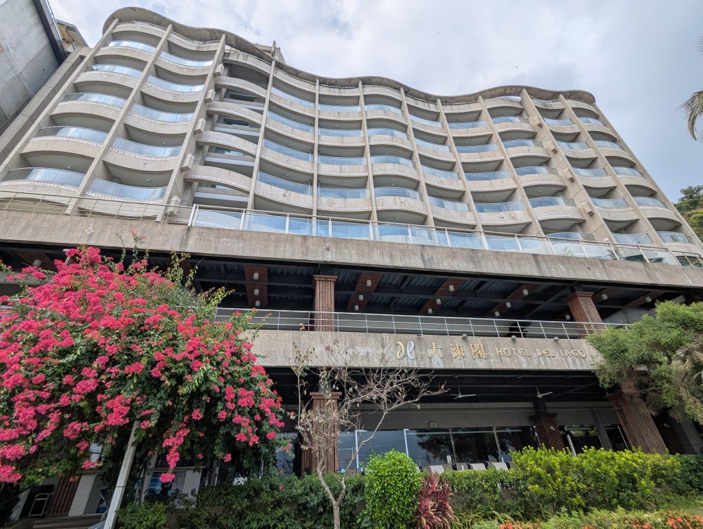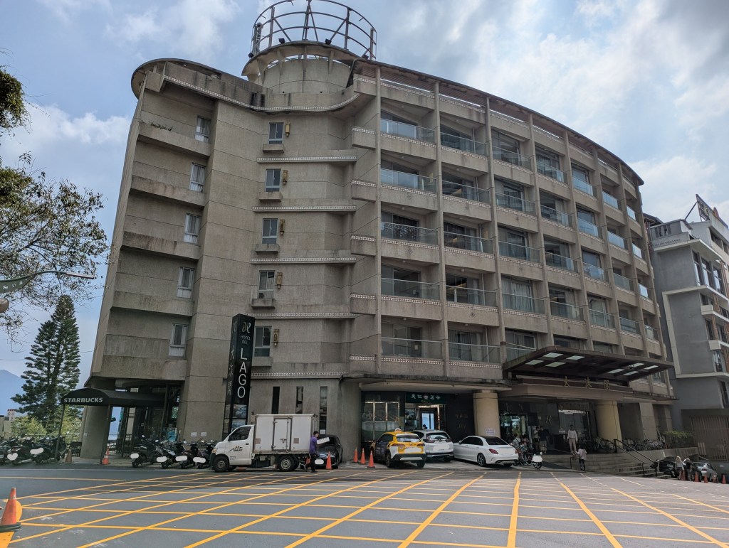 關於日月潭大淶閣飯店之日月潭英迪格酒店改裝換牌案,相較於先前幾次在中山路與名勝街的「路面層」觀察,筆者在2025年的場勘行則是從水社碼頭步道區的視角先看起。接近飯店一樓「杉餐廳」與二樓宴會廳「大福廳」的區域,望向上方的湖景客房,外觀看來確實是需要重新拉皮翻修與改裝,而像是中午時段一樓杉餐廳外的露台區,「景觀餐廳」本質是有的,可惜目前外觀有種荒涼感並且需要調整植物遮蔽的程度,若未來在遵循品牌風格與規範下,全館進行改裝並與景區融合,則令人驚豔的英迪格酒店或可誕生。