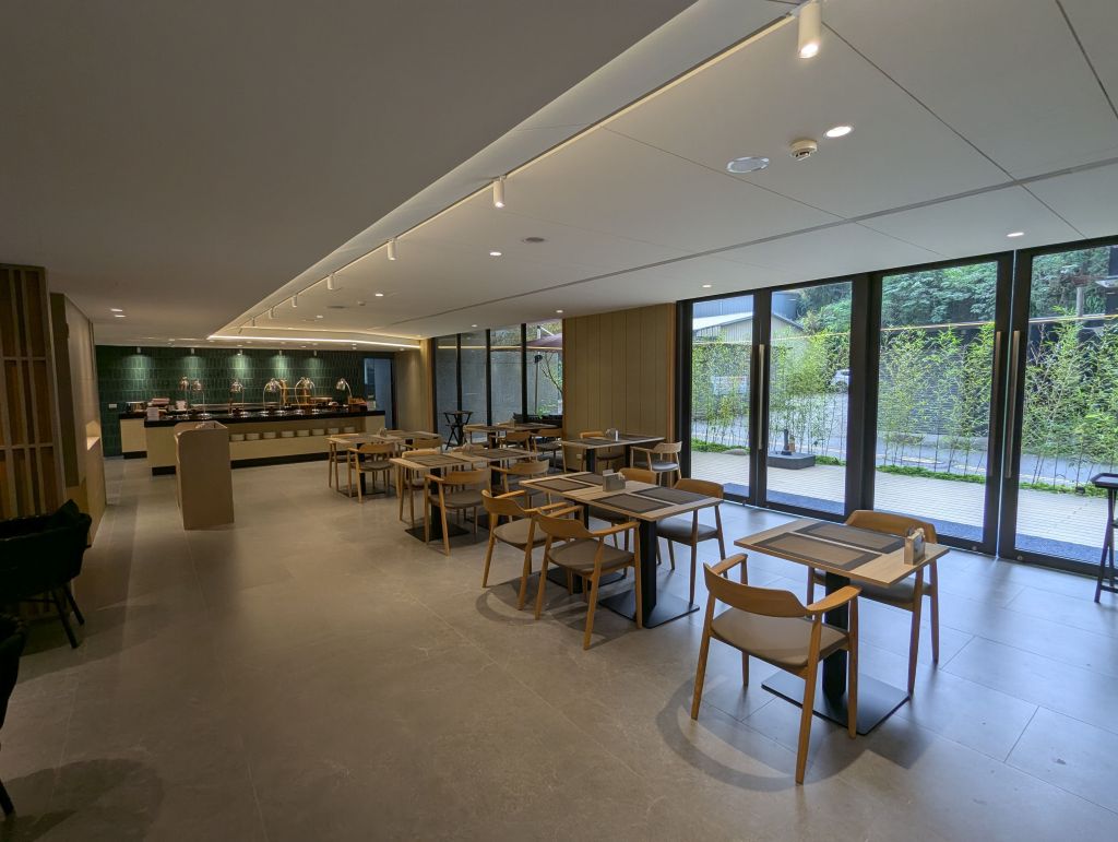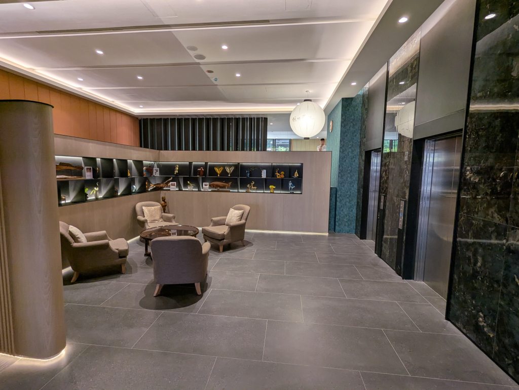 日月潭泰湖樓金鬱金香酒店(Golden Tulip Taihu Hotel)的貼文曾一度在2025年8月中旬上架又下架,但隨著業者已於同年9月開放訂房入住,即使筆者10月的日月潭行尚屬於業者「試營運」階段,筆者仍趁機走走看看一下。總客房數82間、樓高9層的日月潭泰湖樓金鬱金香酒店,館內餐廳與米其林指南綠星餐廳─ 陽明春天合作,提供全蔬食的餐飲服務,試營運期間僅提供早餐,未來再逐步成為全日餐廳。至於業者在人力銀行頁面所揭示的「茶酒吧 (CHA & CHILL)」,現場所見(請參考下方圖片),應為前檯接待處對面、被區隔出的空間,功能與一般常見的大廳酒吧 (lobby lounge) 相同,而面對前檯接待處的右方空間,則看似規劃為禮品零售店。