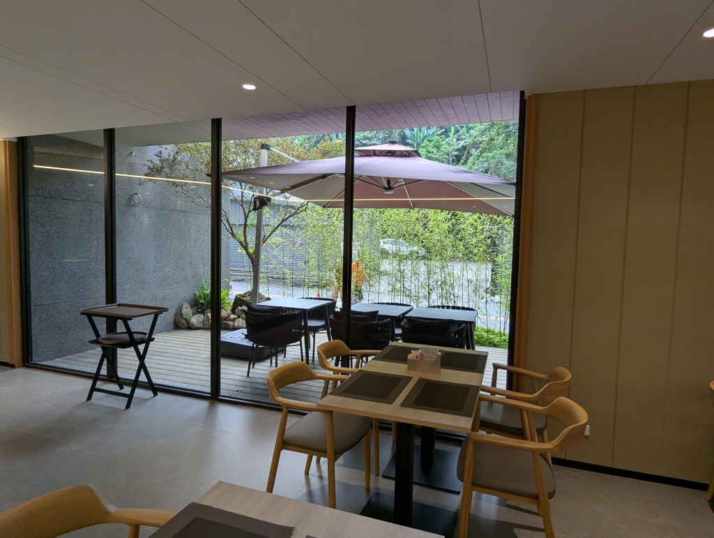 這一排竹子圍籬的後方即為餐廳的露台區。