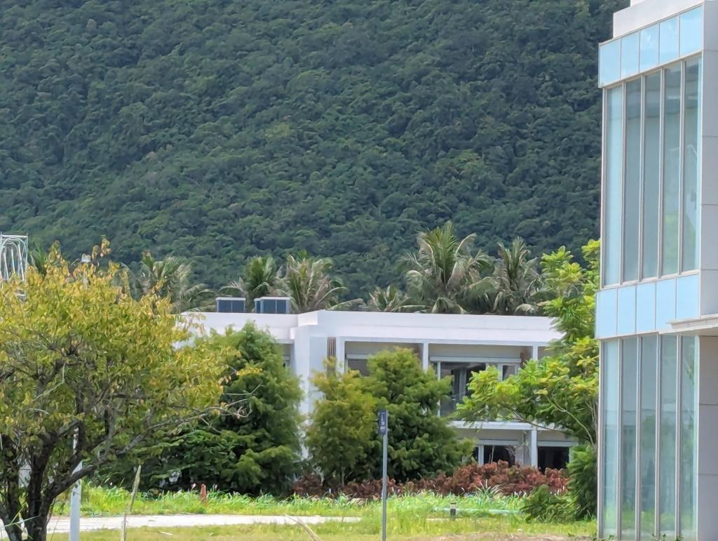 相較於2024年場勘的狀況,2025年在外觀上只見園區的工程圍籬已撤除,酒店主棟可見施工鷹架,與2024年相差不多,或許是主力放在酒店主體建築的內部裝潢所致。至於園區環境與主要進出動線區域看起來仍待整理,且未見到酒店標誌如同阿里山英迪格酒店一樣立在園區圖標示 W「入口意象」之位置及酒店建築上(見上方園區說明圖)。